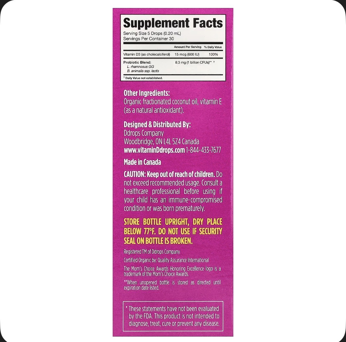 Keep out of reach of children. Do not exceed recommended usage. Consult a healthcare professional before using if your child has an immune-compromised condition or was born prematurely.