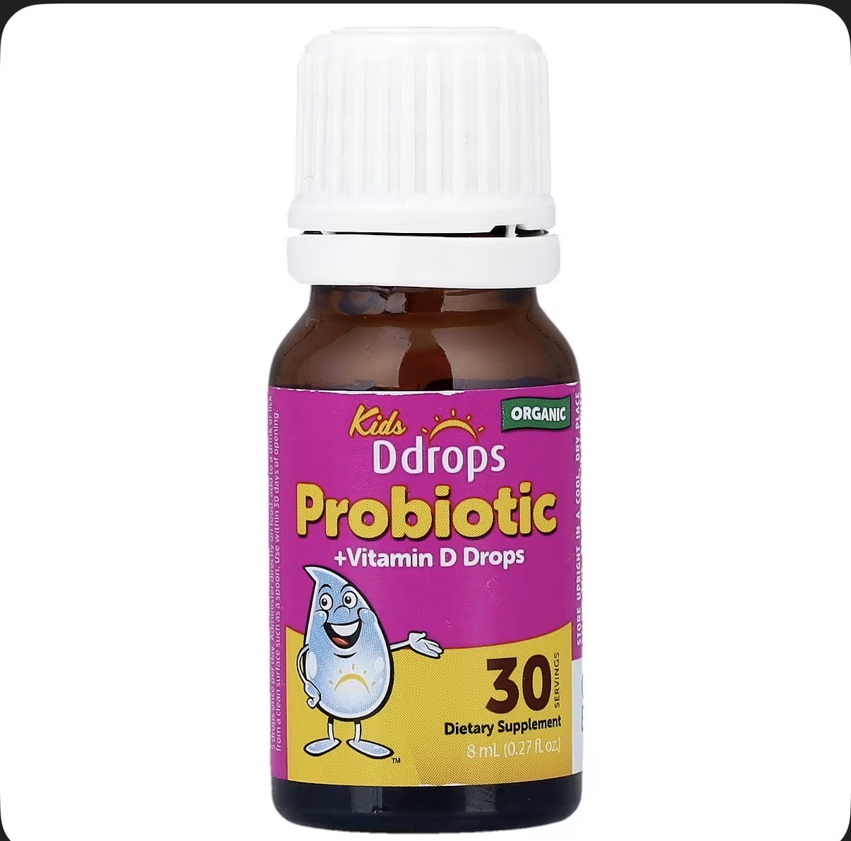 Kids Ddrops, Organic Probiotics + Vitamin D Drops, for Ages 1years+, 0.27 fl oz (8ml)